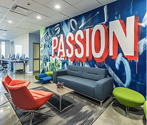 See how motivational quotes, logo murals, and branded colour palettes transform workspaces into inspiring environments. Make a statement with your office walls and increase employee productivity, creativity, and brand awareness.